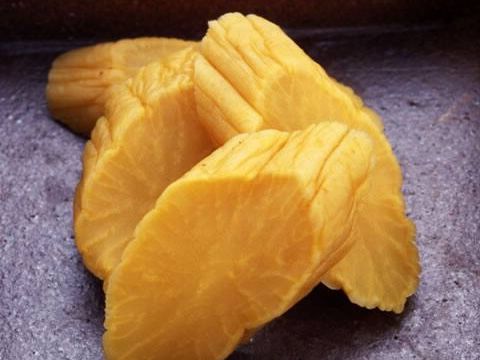 自然と黄色く変化している 沢庵漬けとも呼ばれるたくあんは 塩や糠で漬け込んで