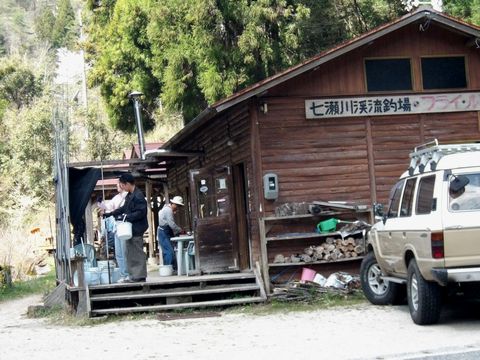 いつもお世話になっちょります七瀬川渓流釣り場の鱒池の釣り 今日一緒に行かれる方が