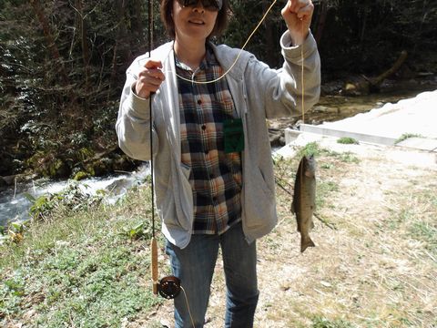 アマゴ池で何とか釣らそうと思いましたが 長時間餌やテンカラ師の猛攻で