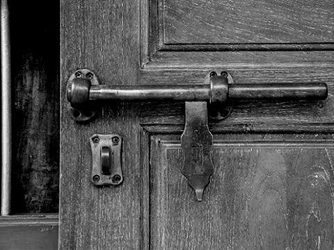 すべて窓や出入り口が中から脱出できないように外側から閂(かんぬき)と鎖で固められて